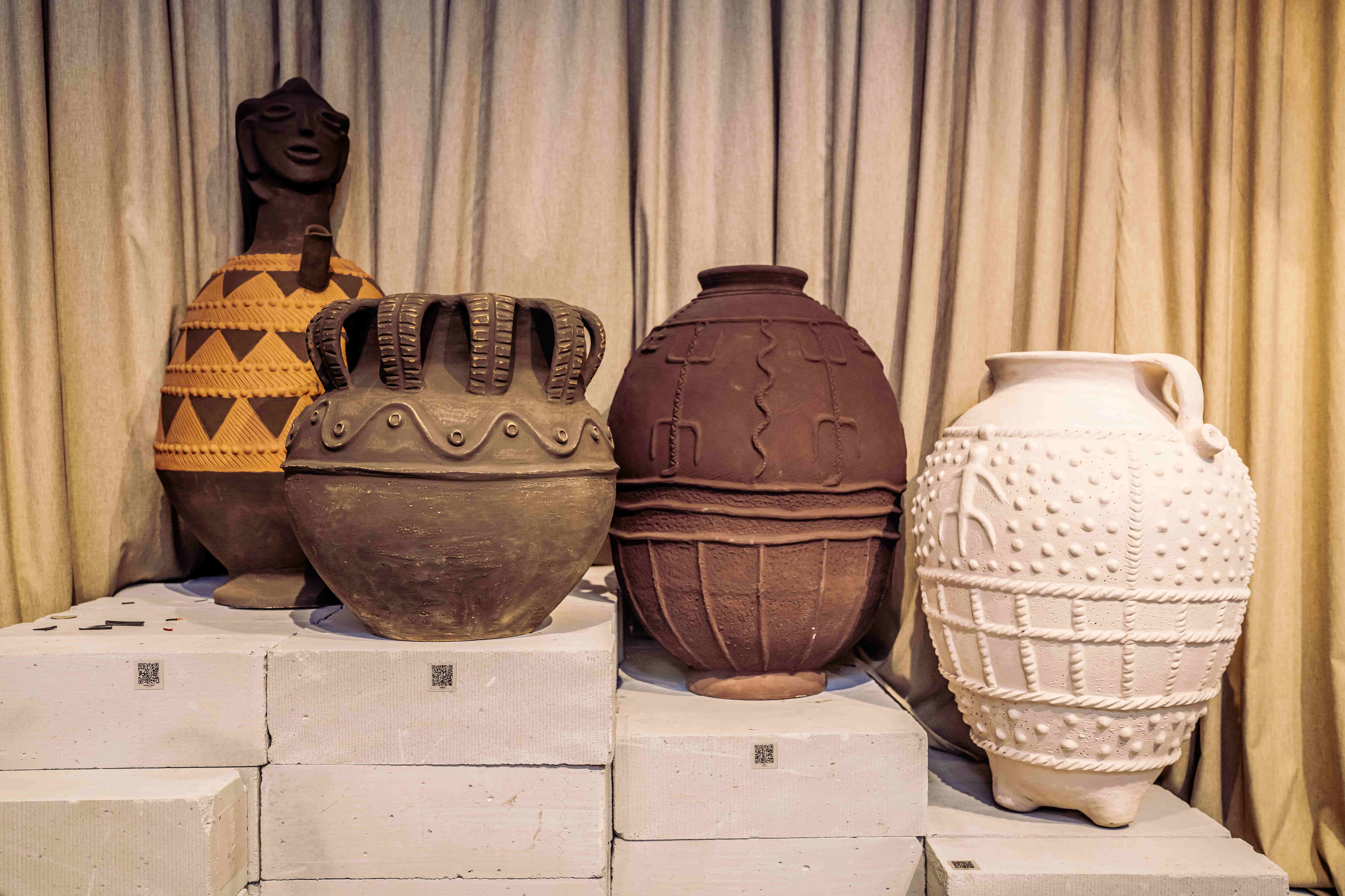 Our making process is rooted in the coiling technique practiced by Tamil Nadu Ayyanar potters, allowing us to hand-build forms up to seven feet tall with intricate textures and surface details. We keep the aesthetic natural, earthy and material-forward, relying solely on authentic clay and minimal additives.