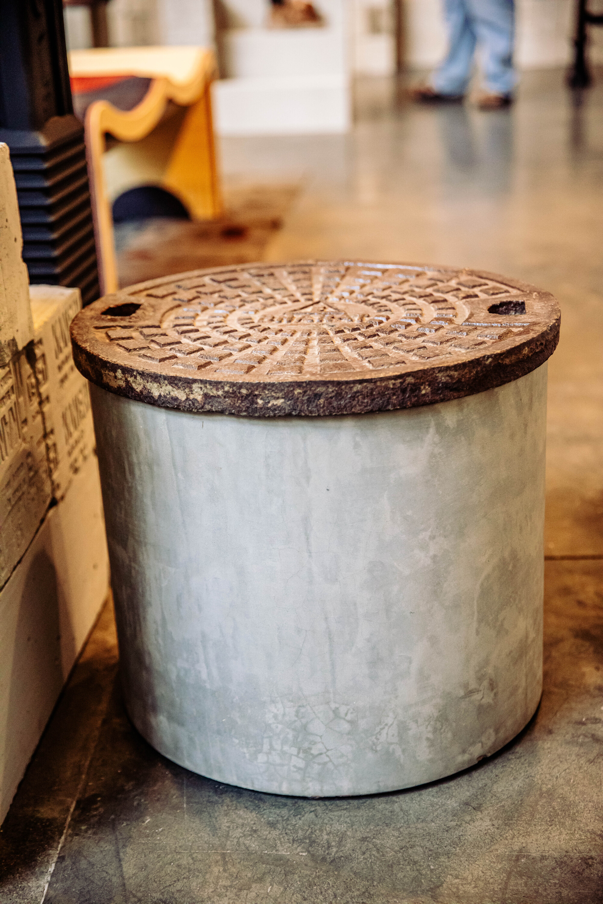 Our root belief of sustainability is ingrained in this table’s unique structure. This side table grabs the attention due to its antique steel manhole top. The antique top is carefully placed on a curved concrete base that is balanced well with iron bars. Overall this peculiar piece of furnishing would complement really well with contemporary interiors and add a distinct vibe to the ambiance of the room.