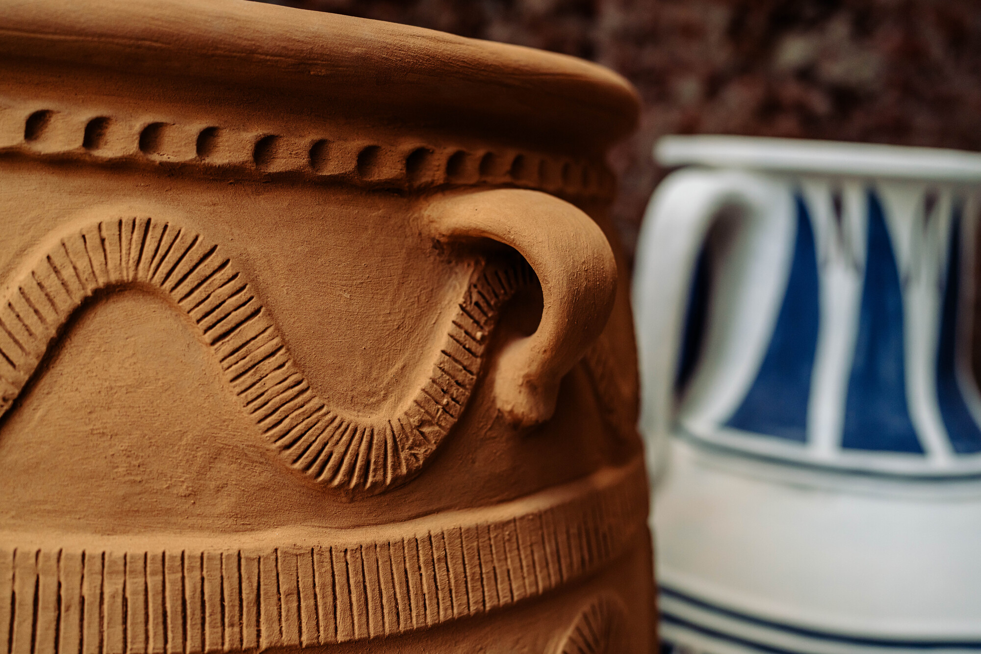 Our making process is rooted in the coiling technique practiced by Tamil Nadu Ayyanar potters, allowing us to hand-build forms up to seven feet tall with intricate textures and surface details. We keep the aesthetic natural, earthy and material-forward, relying solely on authentic clay and minimal additives.